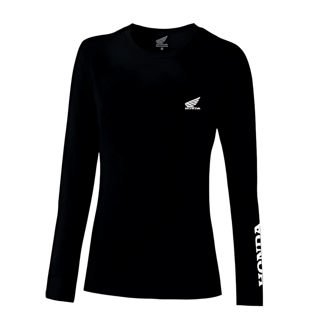- Remera de Dama de jersey manga larga con escote cuello redondo con estampa a contratono.